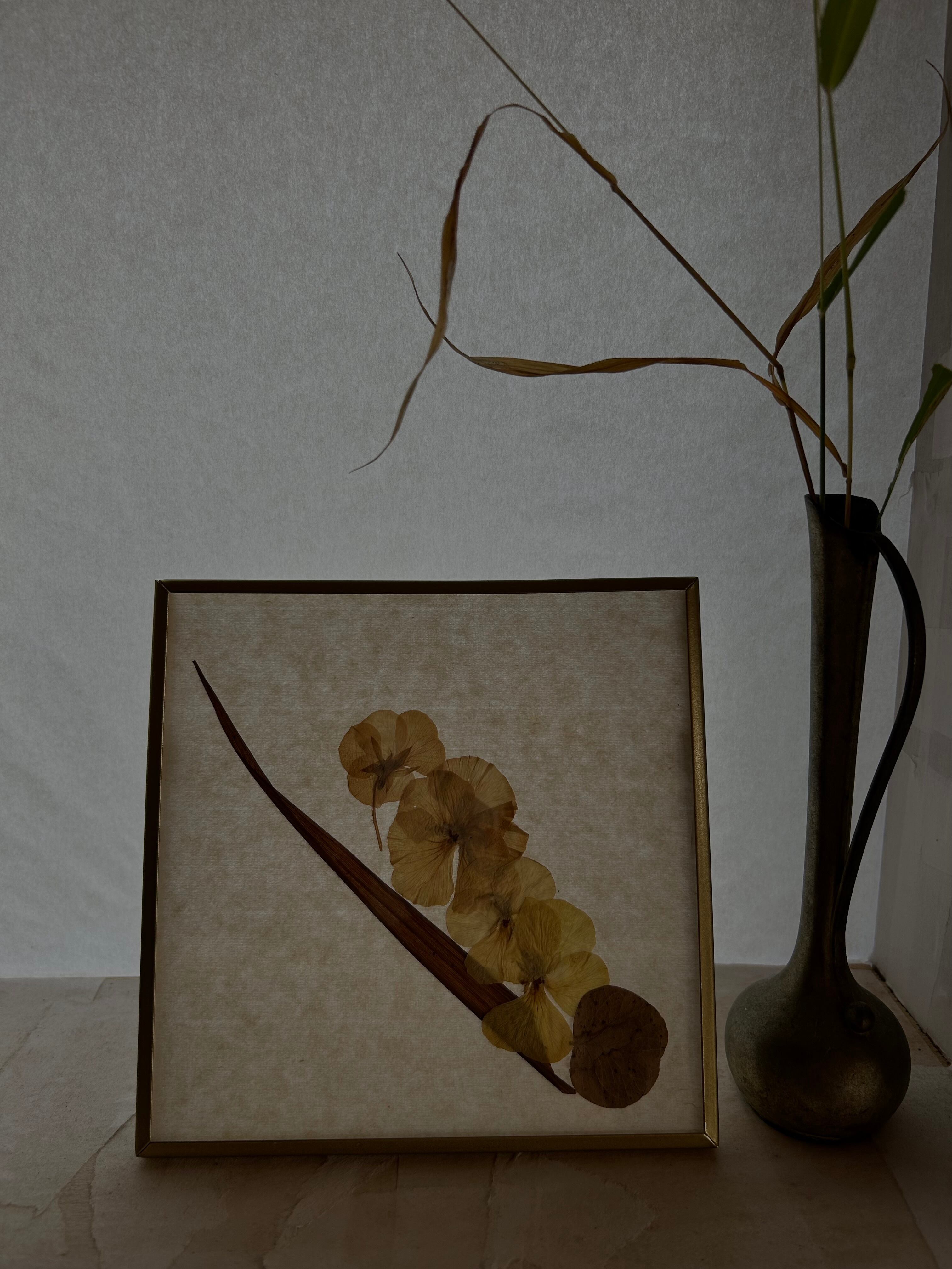 額に入った押し花アートです。